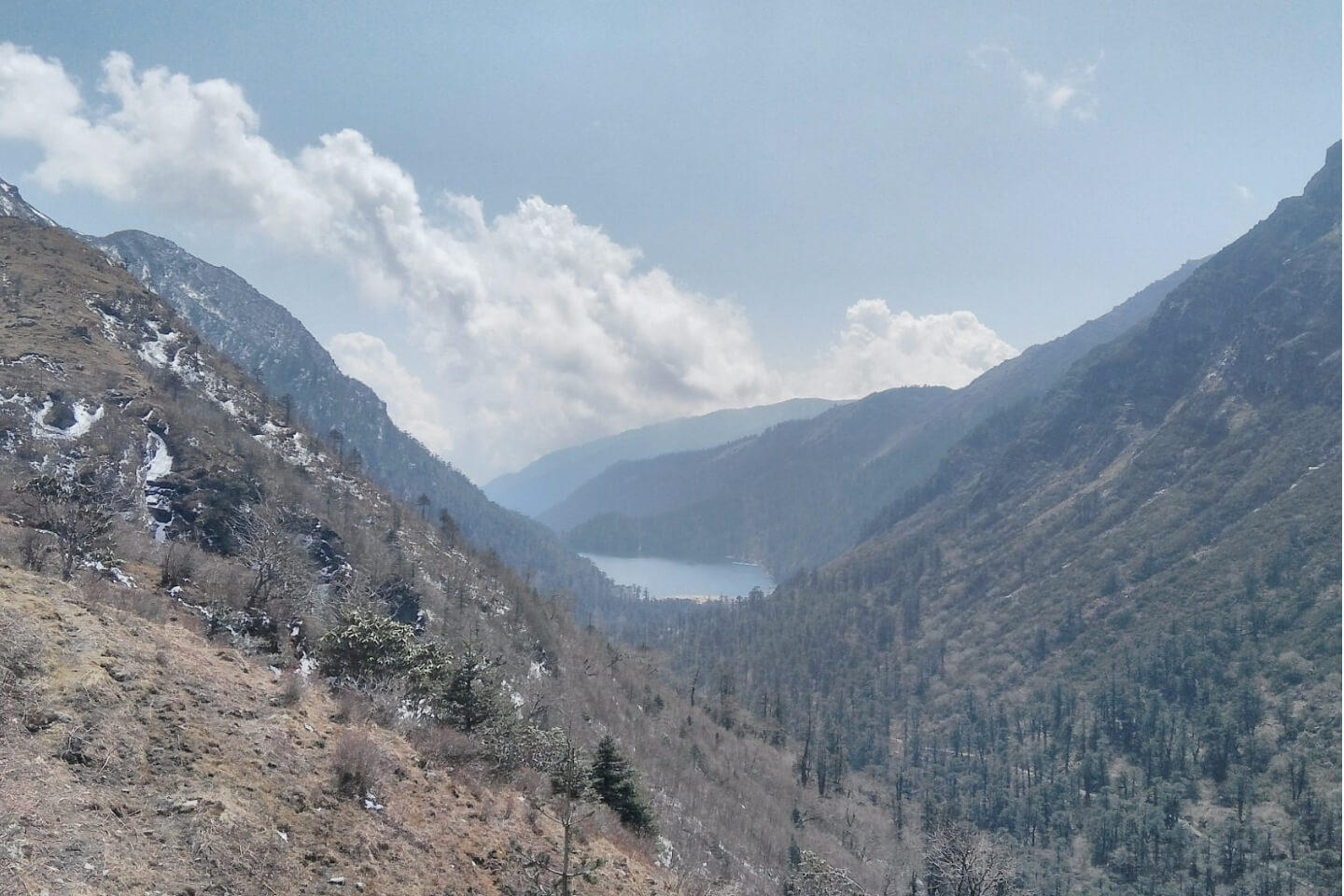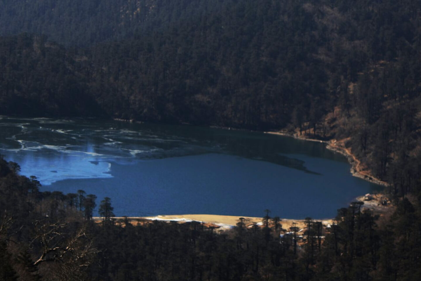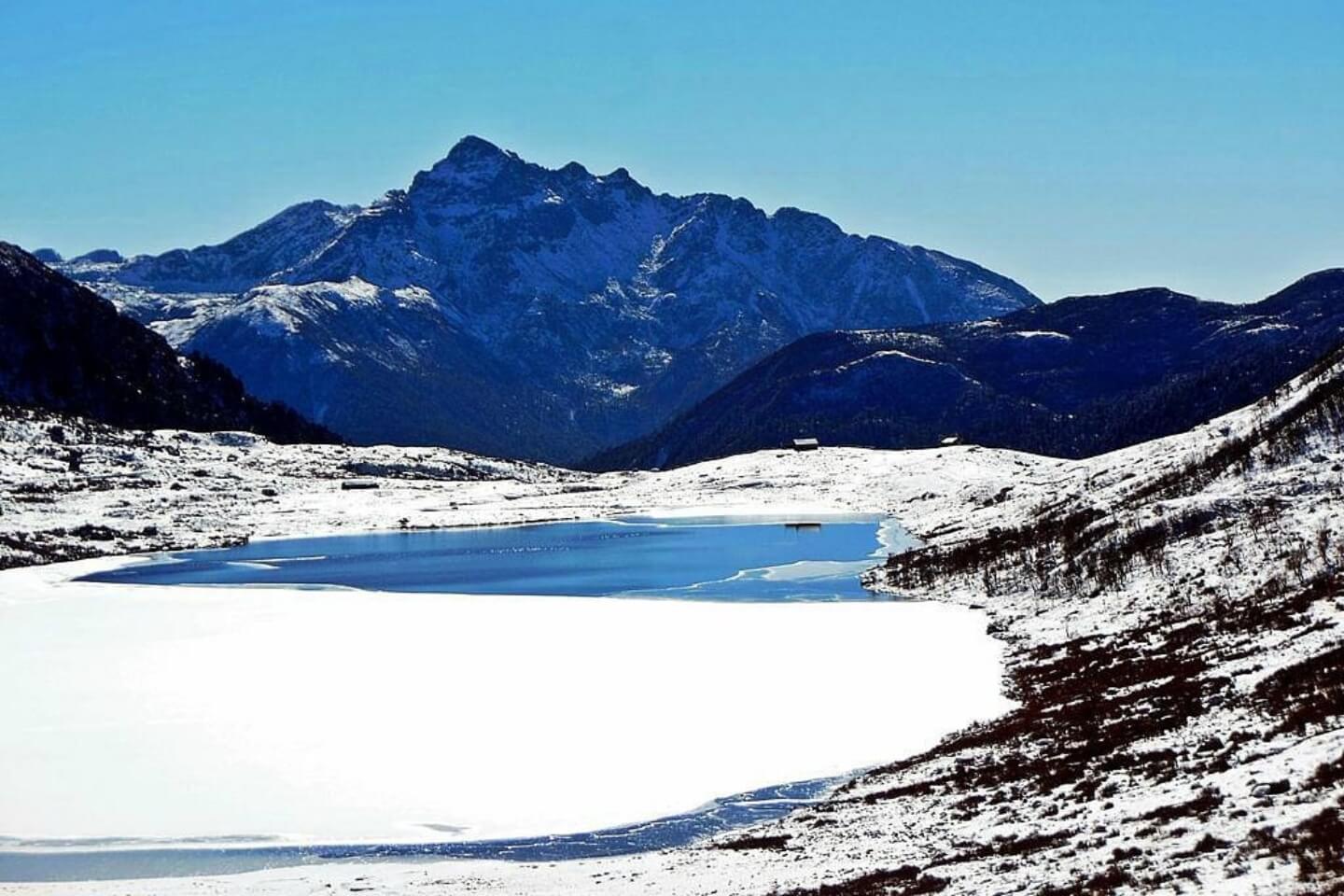 Menmecho Lake is a beautiful high-altitude lake, about 12,500 feet (3,810 meters) above sea level. It is one of the high-altitude lakes of Sikkim. This lake is surrounded by lush alpine meadows and dense forests filled with rhododendron, juniper, and other plants native to the Himalayas. The area surrounding Menmecho Lake is a biodiversity hotspot.