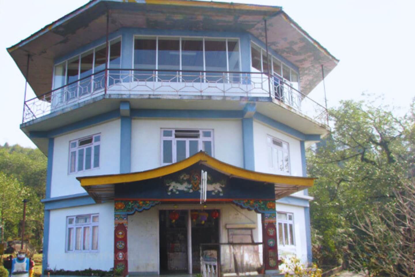This place was built by the former king of Sikkim, Tashi Namgyal, who ruled between 1914 and 1963. It is situated 7200 meters above sea level. To reach this altitude, you need to climb a few steps. It is a small circular place which can accommodate 15-20 people at a time.